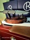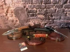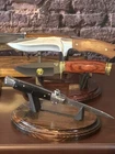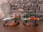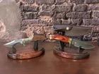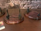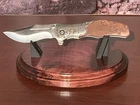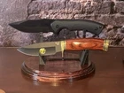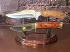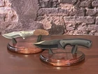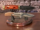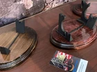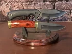 NEW Double Knife Display - August 2023 Single display / double display stand or the new Knife w/Sheath display! Feedback - Dec 2023 - Great! July 2024 - A Most Excellent Seller! Polite & Very Responsive Via eBay Messenger! 100% Trustworthy. An Overall Good Stand. Willing To Meet His Customer's Requests. Quick Order Fulfillment. Very Nice Black Cherry Finish!! Properly Protected Packaged For Safe Transport. This Storefront Is Worthy Of Your Business. A+ NOTE: This feedback is from a Reseller of Top of the line Knife manufacturers. They have chosen the Single Knife Display / Black Cherry Finish to display in photographs for their new ebay/web pages. Made in the US! Beautiful display for your knife collection. Display 2 knives or Single Knife display. The knife stand is a 3D printed custom stand that allows unique flexibility. It's mounted to a 5" x 7" x 3/4" Beautiful wood display finished in choice of Mahogany or Black Cherry Stain with 4 Felt feet for furniture protection. Each plaque receives 3 coats of Polyurethane for lasting protection. A museum quality stand! You can purchase a single stand for Single Knife or a Two Knife stand. NEW! September 2023 - A stand for Knife and Sheath!! NEW! November 2024 - Double Reverse stand! 2 Knives. Bottom points right, Top points left. See the last three listing pictures for Dbl reverse stand. Single Stand - Blade and handle holders come attached spaced 4" apart but the 1.5mm thick connecting piece can be easily cut for custom spacing if needed. The stand is specifically designed so the knife can be displayed "Straight up" or angled back slightly depending on the thickness of your blade. The blade holder is slightly lower than the handle holder for a point down display. The single stand can be used to display blade pointing left or blade pointing right. Double Stand - The bottom holders have the same attributes as the Single Stand. The Top Stand sits 2" higher than the bottom and is more of a "Straight Up" display. The Blade and Holders are more level than the bottom display. The double stand will only display the Blade pointing left. If you want you knife to display blade pointing right see the new Knife sheath stand. To order the Double reverse stand include that request with the order. NEW! Knife with Sheath/Double display stand . A great option to display your knife and sheath together. I opened up the blade and holder dimensions on the top holders to accept standard 9" fixed blade sheaths. Because the face of the sheath has the blade point facing to the right it can also be used for 2 knives facing right. To order use the drop down menu: Just choose from the Single stand, Double stand, or the Knife/Sheath display stand. The Knife /Sheath stand is a totally different design than the double display. The Double has the blade pointing left. The Knife/Sheath has to face widened the holders on the Top to accommodate most sheaths. Wood Finish Options . - You can choose from a Black Cherry or Mahogany finish for your stand. Materials: Al 3 Stand holders are 3D printed using PLA or PETG filament. The plaque is 5" x 7" x 3/4" oval shaped, made from knotty Pine. Each plaque is hand sanded and receives 2 coats of wood stain & 3 coats of Polyurethane. Each Stand & Plaque comes with two 2.5mm x 10mm Black Oxide flathead phillips wood screws. Assembly is required. Each stand comes with four - 3/8" felt feet for furniture protection. From the drop down menu you can choose 1) A single Stand w/ Wood Plaque 2) Dual Stand with Wood Plaque 3) Knife/ Sheath stand with wood plaque 3) Stain Option.- Black Cherry or Mahogany Need more info? Contact me via ebay! Important Note : Please contact me via ebay for any of the following issues: 1) If you need more stands than shows in the listing. I make these in small production batches but I have shipped in quantities up to 10 and discount price breaks can be applied at higher quantities! 2) I try to ship same or next day whenever possible M-Thurs. If you order on Friday assume a Monday ship date. 3) If you want to combine shipping with any of my other stands. I can ship different products to the same address to save on shipping costs but it's best to contact me before ordering so I can arrange it on ebay. Contact me and we'll find the best solution to save you $$ on shipping. These are handmade and therefore the final product will have variations in color or wood grain pattern which we are not responsible for. All products are inspected for best quality appearance before shipping to customer, Any Helmets, medals, nameplates, or objects/items other than the stand are not included. You are buying a display stand on this listing. Thank you for your business and support!! MIKE"S CUSTOM HELMET & Bayonet STANDS