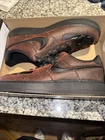 Elevate your sneaker game with these Nike Air Force 1 Low Halloween Skull sneakers. The red leather upper material is perfect for any spooky outfit and the low top shoe shaft style adds a touch of sophistication. The skull theme is edgy and unique, making these sneakers a must-have for any Nike lover. These athletic sneakers are perfect for any occasion, whether it's a day at the park or a night out with friends. The Nike Air Force 1 model is a classic and these sneakers are sure to make a statement. Get your hands on these sneakers today and step up your sneaker game.