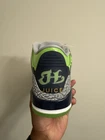 Elevate your sneaker game with these limited edition Air Jordan 3 Doernbecher in blue. Designed with a mid-top silhouette, tie and lace-up closure, and a foam insole, these sneakers ensure both comfort and style. The leather upper material and rubber cleat type make them suitable for various occasions, including gym and training, walking, cross-training, CrossFit, and basketball. These sneakers are perfect for men who want to add a touch of retro to their wardrobe. The solid pattern and Snike character make them a versatile addition to any casual or activewear outfit. With a release year of 2023 and a US shoe size of 15, these Air Jordan 3 Doernbecher sneakers are a must-have for any sneakerhead.