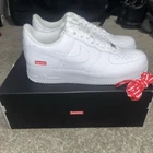 HomeSize 9.5 - Nike Air Force 1 x Supreme Low Box Logo - White