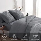 Return Policy Fast Delivery Trusted seller Gray Twin Size Comforter Set Tufted Bedding Sets Microfiber Boho Striped Comforter Set Lightweight Fluffy Comforter 5 Pc with Comforters, Sheets, Pillowcases(Twin, Gray) Product Description Quality Fabrics: The comforter set is made of high quality fiber fill and sewing process, which is skin-friendly and soft also provides a fluffy and lightweight experience. It will give you a great sleeping experience in all seasons Gift: The bedding set is bohemian in style, with classic tufted stripes and AB side design, simple yet elegant to match any bedroom style. Packaged in a vacuum handheld dust bag, it is beautiful and simple, and can be an ideal gift for your special occasions Considerate Design: The comforter set has a hidden neatly stitched design to prevent the filling from moving or clumping after washing. Four corner loops hold the comforter in place, and the deep opening bedspread wraps around the mattress to prevent it from slipping into a pile when you sleep What You Get: Gray twin size is a 5-piece bedding set including Flat Sheet(66 x 95 inches), Fitted Sheet (39 x 75 x 14 inches), Comforter (66 x 90 inches), 2 Pillowcase(20 x 26 inches) Easy Care: Supports machine wash in cold water and simple tumble dry or tumble dry at low temperatures. If you have any questions about the product, you can always contact our team Shipping Returns Payment Shipping Shipping is FREE to all addresses other than APO/PO boxes in the lower 48 states. All our stock ships from US-based warehouses. Shipped via USPS or UPS (depending on location and package weight) Unless stated otherwise, all orders will ship within 24-72 hours of your payment being processed. Check our feedback to see the great reviews of FAST shipping we offer. Returns Seller does not accept returns Payment We currently accept payment via eBay managed payments only. Once payment is cleared, we will dispatch your shipment within 1-3 business days. Please refer to the "Shipping" tab for more information regarding shipping speed to your destination.