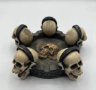 Skeleton Skull Ashtray Halloween Pacific Bones Resin Cigar Ash Tray Tray is in good pre-owned condition. No defects or stains. Pet free home. Length from end to end is 6”. The inner length-3.5”. We list new stuff everyday! Feel free to send offers anytime! Please review all pictures and ask any questions you’d like before purchasing! Shipping next business day! This unique ashtray is perfect for Halloween or just as a fun addition to your collection. Crafted from resin, it features a detailed skeleton skull design and can hold cigars or cigarettes. The ashtray's origins are unknown, adding to its mysterious appeal. Ideal for collectors of tobacciana or those who appreciate the macabre, this ashtray is a must-have.