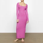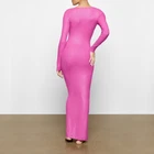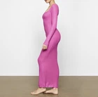 Skims Maxi Plus Size Dress Size 3X Pink Ribbed Long Sleeve Lounge Shimmer