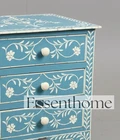 This stunning bedside table adds a touch of elegance and artistry to any bedroom. The intricate floral vine pattern, handcrafted with ethically sourced camel bone, makes each piece unique. The soft sky blue resin gives it a fresh, airy feel, while the three spacious drawers offer practical storage. Handmade by skilled artisans in Rajasthan, it blends traditional craftsmanship with modern charm. Perfect for adding a refined, bohemian touch to your space!
