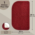 These slip-resistant kitchen rugs for your floor are crafted from comfortable and easy-to-clean polypropylene. Give your feet the ultimate gift of long-lasting comfort while simultaneously elevating your kitchen decor. The half-round anti fatigue mat measures 30 x 18 inches, perfectly sized to fit in front of the sink, stove, or entryway. Please note: the slip-resistant backing is recommended for dry floors only; it will not properly grip on wet floors. Red Rugs for Kitchen: This red kitchen mat is the perfect combination of style and function; the half-round shape effortlessly adds sophistication to your kitchen decor Personalize Your Home: Place the half round door mat at the stove, sink, or fridge to provide your feet with comfort while simultaneously complementing your existing red kitchen and home decor Standard Size: The half round rug measures 30x18 inches and is a versatile addition to any room in your home, from the kitchen or bathroom to the entryway or living room Easy To Clean: Crafted from high-quality polypropylene and featuring non-skid backing, our red kitchen rug is a durable and easy-to-maintain, simply vacuum the mat to keep it looking clean and fresh Versatile Rug: You will receive 1 red half moon rug for the kitchen or bathroom; please note: this rug is recommended for dry floors only; the grip backing will not properly function on wet flooring