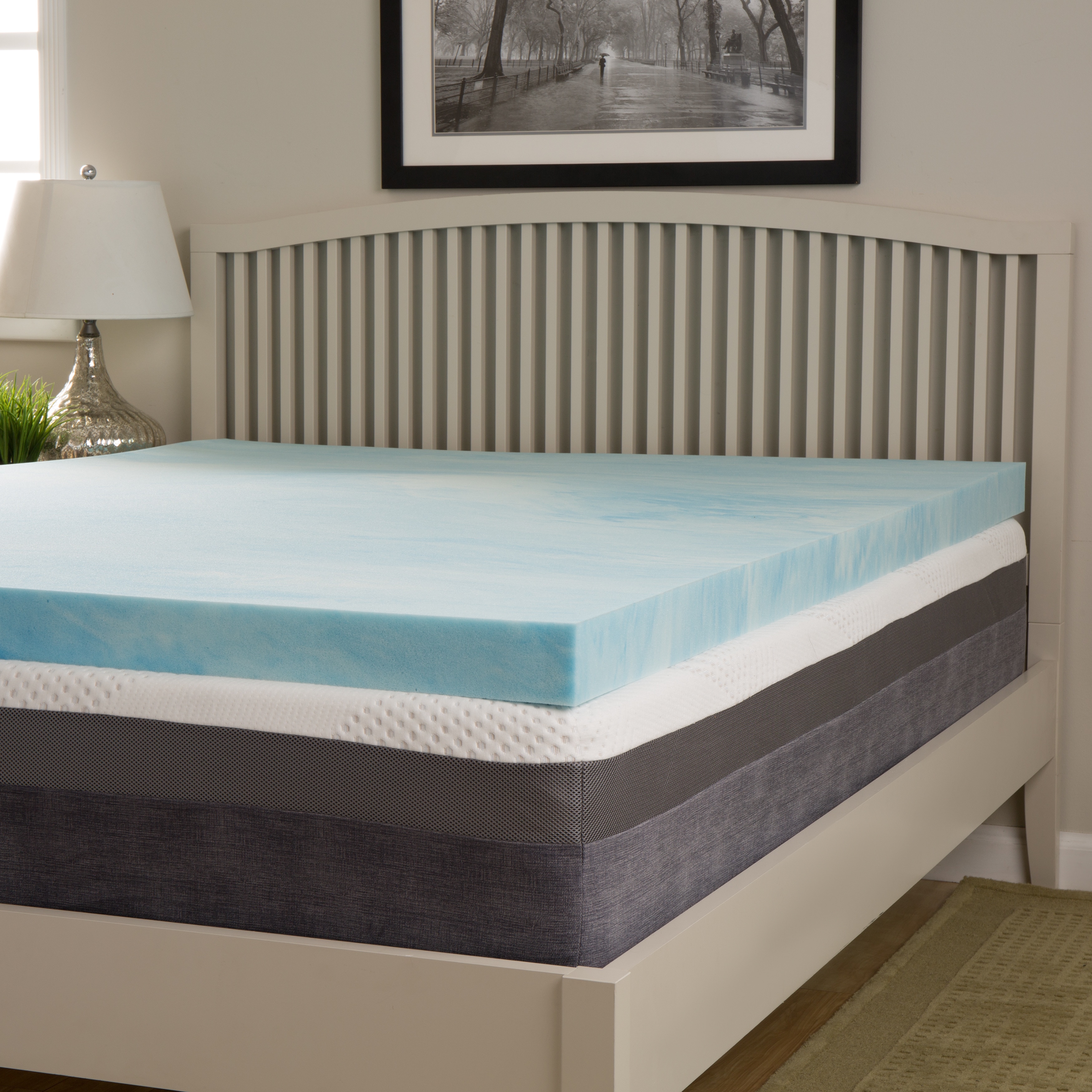 This Slumber Solutions choose your comfort 2 inch gel memory foam topper allows you to choose your ideal comfort level soft, medium, or firm. Features premium gel memory foam that gently cradles your body providing therapeutic support and superior pressure point relief. Memory foam helps reduce tossing and turning that causes sleep disturbances.Measures 2 inches thickGel channels heat away faster, keeping you at an optimum sleeping temperatureTemperature-sensitive memory foam provides the ultimate in comfort and pressure point reliefMemory Foam gently cradles your body to provide an enjoyable restful night's sleepMeets all flammability standardsDimensionsTwin: 2 inches high x 38 inches wide x 74 inches longFull: 2 inches high x 53 inches wide x 74 inches longQueen: 2 inches high x 59 Free Shipping Over $49.99* Details Slumber Solutions 2-inch Gel Memory Foam Mattress Topper Product Description: This Slumber Solutions choose your comfort 2 inch gel memory foam topper allows you to choose your ideal comfort level soft, medium, or firm. Features premium gel memory foam that gently cradles your body providing therapeutic support and superior pressure point relief. Memory foam helps reduce tossing and turning that causes sleep disturbances. Measures 2 inches thick Gel channels heat away faster, keeping you at an optimum sleeping temperature Temperature-sensitive memory foam provides the ultimate in comfort and pressure point relief Memory Foam gently cradles your body to provide an enjoyable restful night's sleep Meets all flammability standards Dimensions Twin2 inches high x 38 inches wide x 74 inches long Full2 inches high x 53 inches wide x 74 inches long Queen2 inches high x 59 inches wide x 79 inches long King2 inches high x 75 inches wide x 79 inches long Cal King2 inches high x 71 inches wide x 83 inches long Temperature-smart memory foam responds to your body heat and movement, reshaping to evenly distribute body weight and relieve pressure points to improve circulation Never needs turning Memory Foam Tips: This product arrives tightly packed in a portable box for customer convenience. Remove from packaging within 72 hours of receipt to maximize foam expansion. You can sleep on it the same night you unwrap it, however please allow 48 hours to fully return to its original shape. Vacuum sealing sometimes traps odors. After unwrapping, air product for a few hours to eliminate trapped odors. Due to machine-cutting manufacturing processes, there may be slight variances in the dimensions of this product. Due to the nature of Memory Foam the firmness level of every item is unique. Please be advised that even similar products may produce different firmness results Once opened this product is non-returnable. Click here to view mattress topper buying guide.