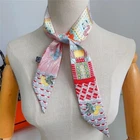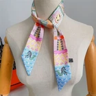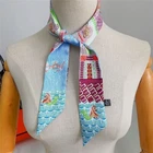 16 Momme Twill Silk Scarf Bandanna Trojan Print Square Shawl 35 Inch