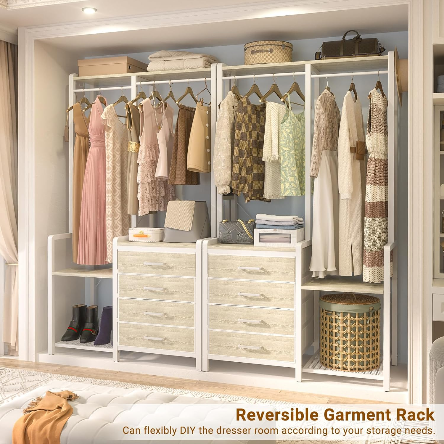 Fast Shipping On All Items 30 Days Money Guarantee Customer Support Excellent Service 100% Satisfaction Satisfaction Guaranteed Small Clothes Rack & Garment Rack with 4 Drawers Storage Shelves Charging Station White Oak Specification Style Clothes Rack with Drawers Color Oak Material Metal Batteries Required? No Installation Type Free Standing Recommended Uses For Product Clothes Special Features Compact, Adjustable, Charging Station Special Feature Compact, Adjustable, Charging Station Product Dimensions 19.7"D x 39.4"W x 71"H 39.4 "h x 19.7 "h x 71.0 "h. Item Description 👚Multifunctional Clothes Rack: The clothes rack has a total of 5 different types of storage space, 4 large drawers, 3 storage shelves, 1 t-shirt hanging rod, 1 long dresser/coat hanging rod, and 1 top storage shelf, allowing you to have a variety of storage methods in limited space to keep everything in organize. 👗Garment Rack with 4 Fabric Drawers: Compared with wooden drawers, fabric drawers are easier to install, the Cyclysio garment rack has 4 large fabric drawers of 19.7" x 19.7" x 5.5", which provide private space while meeting the large storage capacity, and are very suitable for storing underwear, socks, pants, and other small items. 👢Adjustable & Reversible Closet Organizers: The clothing rack is reversible, you can choose to install the drawers at left or right according to your habits. And the storage shelf on another side is height adjustable for stacking clothes, storage boxes or even shoes letting you place items flexibly. 👒Small Clothing Rack with Charging Station: Small clothing rack (39.4" x 19.7" x 71" ) is a compact size it's perfect for small spaces, ideal to place beside the bed, and the charging station with 3 outlets and 2 USB ports is convenient for charging your , iPad. Attached 2 additional hooks that can be used to hang accessories like hats, scarves and belts. 👕Easy Installation: The small closet rack is stable, solid, and easy to install, come with clear manual instructions, if you have any trouble installing our closet rack with drawers, or if you receive a damaged item, please feel free to us and we will solve the problem for you. About us We offer the best prices around on high quality products. Our E-store includes media such as books, movies, music and games while offering electronics, toys, sporting apparel, clothing, tools, general home, garden items and more. Shipping We are always working hard to ensure your package arrives as soon as possible. Please understand that some factors like weather, high postal traffic, and the performance of shipping companies are outside of our control. We offer free shipping to the lower 48 states and ship within 2-3 business days of payment, usually sooner. We do not accept P.O. Boxes. Please provide a physical address. For shipping outside of the continental USA, we only use eBay's Global Shipping Program.The item is shipped to KY and then sent to the rest of the world. International customers are responsible for all duties and taxes. Continue to check out to calculate costs for shipping the item to your country. Messages regarding eBay's Global Shipping Program MUST be directed at eBay EXCLUSIVELY. Returns We offer a 30-Day Return Policy on items in which you are not completely satisfied with. You have the option of a full-refund or an exchange of the item. No returns are available on items shipped outside of the USA Satisfaction We try over very best to make sure every customer is completely satisfied. If there's a problem, message us! We're happy to help. Payment Options Shop With Confidence