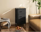 Dresser for Bedroom Nightstand, Small Fabric Dresser Chests of Drawers, Closet Organizers and Storage with 3 Drawers, Black Discription Effortless Assembly: Enjoy easy assembly with our fabric dresser, supported by round-the-clock installation assistance and after-sales service for any concerns regarding quality Compact Design: Measuring 11.81"D x 15.75"W x 28.82"H, this small dresser is made for tight spaces, maximizing your room's potential Multi-Functional: It transcends the role of a dresser, doubling as a bedroom nightstand or a stylish end table by the couch, while providing ample storage for your clothes and essentials Spacious Drawers: Each drawer boasts an 8.3" depth, providing ample room to organize your clothes and belongings neatly, reducing creases and enhancing organization Sturdy Construction: Crafted with a robust metal frame, wooden top, X-bracing for stability, an anti-tip design, and adjustable feet for uneven surfaces, this dresser stands the test of time