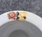 This small pot/vase features a peacock and nature scene design in multi-color porcelain. It is inspired by vintage Oriental aesthetics, with gold-like accents. The height is 3.5 inches, originating from China. The theme includes peacocks and flowers. The specific Chinese dynasty and age are unknown, as well as the maker of the item.