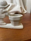 Small White Porcelain Planter, Girl Pouring Water Can Into Flower Pot 2.5”