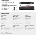 SmallRig Universal Heavy-Duty Fluid Head Tripod AD-01 w/Manfrotto QR Plate -3751 Details of SmallRig Heavy Duty Tripod Compatibility: Universal Pitching Angle: +90°/-75° Ball Base: 75 mm Material: Aluminum Alloy SmallRig 73" Heavy Duty Tripod with 360 Degree Fluid Head and Quick Release Plate Key Features: Compatible with the quick release plate for RS 2 stabilizer; Feel free to switch the dual modes for DJI RS 2 and for Manfrotto High compatibility for quick disassembly and assembly (dedicated quick release plate for this item) Built-in screw holes, tripod bowl base with hidden 1/4''-20 threaded holes for accessory attachment Max.Payload: 17.64 lbs (8 kg) Non-slip large tripod carrying handle with optimized operation experience Adjustable Height: 85-186cm/33-73in Product Dimensions: 16x 16.5 x 89cm/6.3 x 6.5 x 35in Package Dimensions: 16x 17 x92cm/6.3 x 6.7 x 36.2in Net Weight: 4kg/8.8lbs Package Weight: 4.9kg/10.8lbs Expand Multiple Devices The 3/8"-16 threaded holes on the fluid head and the three 1/4"-20 threaded holes on the tripod bracket can help you expand various external devices, such as monitors, mobile phones, microphone, video light, etc. 75mm Bowl Base This video tripod has a built-in bubble level, which can be adjusted horizontally with a 75mm ball bowl, which is convenient for managing the horizontal line of the screen. Middle Spreader The mid-level sling is useful for increasing the stability of the tripod, which also provides stable support when working on uneven surfaces. Carry Bag The tripod comes with a special carry bag to better protect the tripod and make it easy to carry. Note: The accessories for the tripod are in the built-in side pocket of the carry bag. 73" Heavy Duty Tripod 78" Aluminum Camera Tripod 71" Video Tripod Monopod with Fluid Head Fluid Head with Lever key Parameter 1 Adjustable Height: 33" ~ 73" Adjustable Height: 18.5" ~ 78" Adjustable Height: 16.5" ~ 71" Tilt System Design: +90°/-55° key Parameter 2 Payload: 17 lbs /8 kg Payload: 33 lbs /15 kg Payload: 33 lbs /15 kg Payload: 6 lbs /3 kg Special Point Tripod with Fluid Head Tripod with Ball Head Tripod with Fluid Head 3259 Fluid Head with Lever Recommended Products Fluid Head: 3259 Fluid Head: 3259 Tripod: 3474, 3760 ID 3751 3474 3760 3259 Payment Delivery details Terms of sales About us Contact us Payment Paypal: We accept PayPal only. Immediate payment via PayPal is required for all Buy It Now items. For all Best Offers, payment is required within 2 days. If you need special arrangements, please contact us through eBay messages. After your order has been shipped, you will receive an e-mail with the tracking number. Delivery details Prompt shipping within 24 hours is available! US based listing will be sent from US warehouse China based one will be sent via Fedex ONLY Please note the import tax may occur which will be paid by the buyer. Terms of sales We are based in China, and we have warehouses in United States, United Kingdom, Germany and Australia. All products can be shipped within countries above and to worldwide. For consumers who are not in countries above we will send the item from China. We accept bundle purchase, bulk purchase and Co-design, for more information please contact us via eBay message. If you like our products and service, please leave us positive feedback with 5 stars, we will do the same. About us We are a professional camera accessory manufacturer. We have been in this field for over 9 years. We are the second biggest camcorder, camera kit designer and manufacturer all over the world. Our products are selling to over 130 countries and help us earn excellent reputations. Please purchase with confidence. Contact us For customer service please contact us through eBay Messages. Maximum Height: 73.2In Head Type Fluid Head MAX Load 8KG Item Weight 4kg Country/Region of Manufacture China MPN 3751 Compatible Brand Universal Color Black Brand SmallRig Mount Type Tripod Compatible Series Universal Features Quick Release, With Strap, Adjustable Compatible Model Universal Material Aluminum To Fit Camera Type Tripod Model SmallRig AD-01 On Oct 21, 2024 at 05:13:52 PDT, seller added the following information: