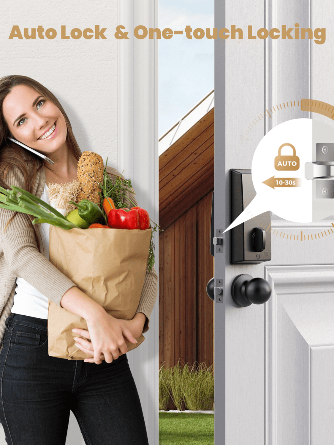 Keyless Entry Door Lock: Arpha smart door lock could be unlocked via App + Password + Mechanical key. Smart deadbolt supports 100 groups of access codes for the front door, including 97 users and 3 admin passcodes. Door lock with code are suitable for a variety of environments, including hotels, apartments, homes, offices, and stores. Auto-lock & One-touch Lock/Unlock: Experience the ultimate convenience with our digital door lock customizable auto lock feature - set to lock after 10 seconds by default, with an optional 10 seconds to 30 minutes delay. Plus, enjoy seamless control with one touch locking/unlocking, and whether you're coming home or leaving, our electronic door lock combines convenience and security that's always at your fingertips. Battery Powered & Type-C Emergency Port: Our deadbolt smart lock is powered by 4 AA batteries (not included), providing 3-4 months of continuous operation. It alerts with a low battery sound prompt when power is running low. Additionally, featuring a Type-C emergency power port, you can effortlessly recharge the smart deadbolt lock whenever needed, ensuring peace of mind even during power outages. Effortless Installation: Arpha smart door lock with handle can be easily installed in minutes with a screwdriver. Universally compatible, this door keypad locks seamlessly fits both left and right door orientations. The deadbolt lock accommodates door thicknesses ranging from 1-3/8" to 2-1/8" (35mm - 55mm). Color: Black Power Supply: Battery Powered(Others Battery) Batteries Included: No