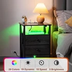 $ 49.61Gray Wood Nightstand Set of 2 with Charging Station, LED Light, Drawers & Shelf