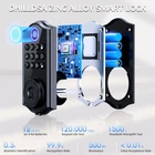 Advanced Fingerprint Recognition: Our state of the art fingerprint door lock can store up to 50 unique fingerprint codes and 50 digital codes, including three manager codes for heightened security. Unlock your door in just 1 second with seamless fingerprint identification. Plus, generate and share permanent, temporary, or one-time passwords remotely via the app for guests and babysitters Smart Security Features: Enhance your home security with an adjustable auto-lock feature that activates in 1 second to 30 minutes. Effortlessly lock the door using the exterior keypad with a simple “one-touch lock.”interior, easily lock and unlock with the knob in a split second—perfect for quick entries and exits Versatile Access Options: Experience the ultimate convenience with multiple access methods—fingerprint recognition, smartphone app, customizable codes, e-key sharing, or a traditional mechanical key. This smart lock is perfect for various settings, including homes, commercial,properties, apartments, offices, and hotels Hassle-Free Installation: Our smart lock installs quickly with just a screwdriver. Compatible with 1-3/8" to 2 (35mm to 50mm) thick doors, it's suitable for all standard American left and right-handed doors. The lock runs on 4 AA batteries for up to 12 months, features a low battery alert, and includes an external Type-C emergency power supply. Even when the batteries are depleted, your access codes remain stored securely, ensuring hassle-free entry. Durable Keypad Door Lock:Our smart lock for front doors comes complete with 2 knob handles and a user friendly keypad deadbolt featuring backlighting, adjustable volume, and a convenient vacation mode. Built to last, it boasts an IP65 weatherproof rating, effortlessly withstanding temperatures from -4°F to 122°F Touch & Go Fingerprint Lock:lock's fingerprint scanner boasts high security against spoofing, leveraging advanced biometric technology and a multi-layer security approach. It employs live data detection to effectively reject counterfeit prints made from materials like silicone or clay, ensuring robust protection against unauthorized access.Experience seamless usability with our lock's 360-degree fingerprint recognition capability, allowing for quick and effortless access from any angle. Security Anti-Peep Electronic Keypad:For added security and to prevent snooping, our system utilizes an anti-snooping password feature. This feature allows the user to add random numbers (up to 20 digits) before and after the password when entering the correct password.