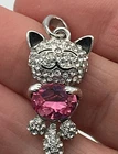 Smiling So Happy Cat 1.25" Pendant Pink Belly Rhinestones Silver Tone Marked N Pre-owned condition. No box or necklace. Pendant. Approx 1.25". See pics. No missing rhinestones. We always offer returns! Bid/Purchase with confidence! Item comes from smoke free – pet free home. Please ENLARGE pics to see closeup of condition and details of item. If you are not satisfied for any reason, please contact us so we can work it out . We follow all of Ebay’s policies and procedures. We want your positive feedback on all transactions. Please don’t give us negative or neutral feedback without contacting us so we can make it right. Returns only accepted for exact items with matching serial numbers where applicable. Email with any questions. See pictures. Items will be mailed per description. Sorry, no local pick ups available.