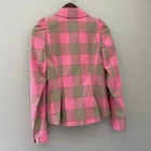 Absolutely love this blazer! The lightweight seersucker fabric makes it perfect for spring and summer, while the playful puffed sleeves and bold pink-and-tan check add a stylish pop. The tailored fit is flattering, and the extra button is a thoughtful touch. Designer Smythe delivers chic femininity—definitely a standout piece in my wardrobe! Great condition, smoke-free home. Highly recommend!