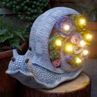 High Quality: This garden figurine is made of high quality resin material, finished with a UV resistant coating, dust-proof and waterproof, can withstand rain, snow or scorching sun without cracking, fading or rusting. Snail Garden Decor: This snail resin statue is hand-painted with very nice details and good workmanship, esigned with 8 succulents of 3 different colors, the center of the flower is decorated with warm white LED lights, emit a warm glow at night, add more charm to your outdoor garden decor. Solar Snail Statue: This snail garden figurine is easy to use, simply turn on the power button before first use, leave it in the on position in the daytime, keep the solar panel under the sun to ensure sufficient sunlight, it will charge during the daylight hours and automatically light up at night for 8-10 hours. Warm Gifts: This snail figurine is 5 x 4.1 x 10.2 inch and 3.1 x 2.8 x 4.7 inch, suitable to use for garden, trees, flowers, fence, flowerbed, walkway decor. This solar garden statue is fun for gift giving for your family and friends as birthdays gifts, Mother’s Day gifts, holiday gifts, weddings gifts or housewarming gifts. Great Decor: This charming snail resin outdoor statue is perfect as solar garden yard decorations, brighten up your backyard, lawn, pond, pool, window sills, countertops, entryways, it is a wonderful addition to your lawn and home decor.