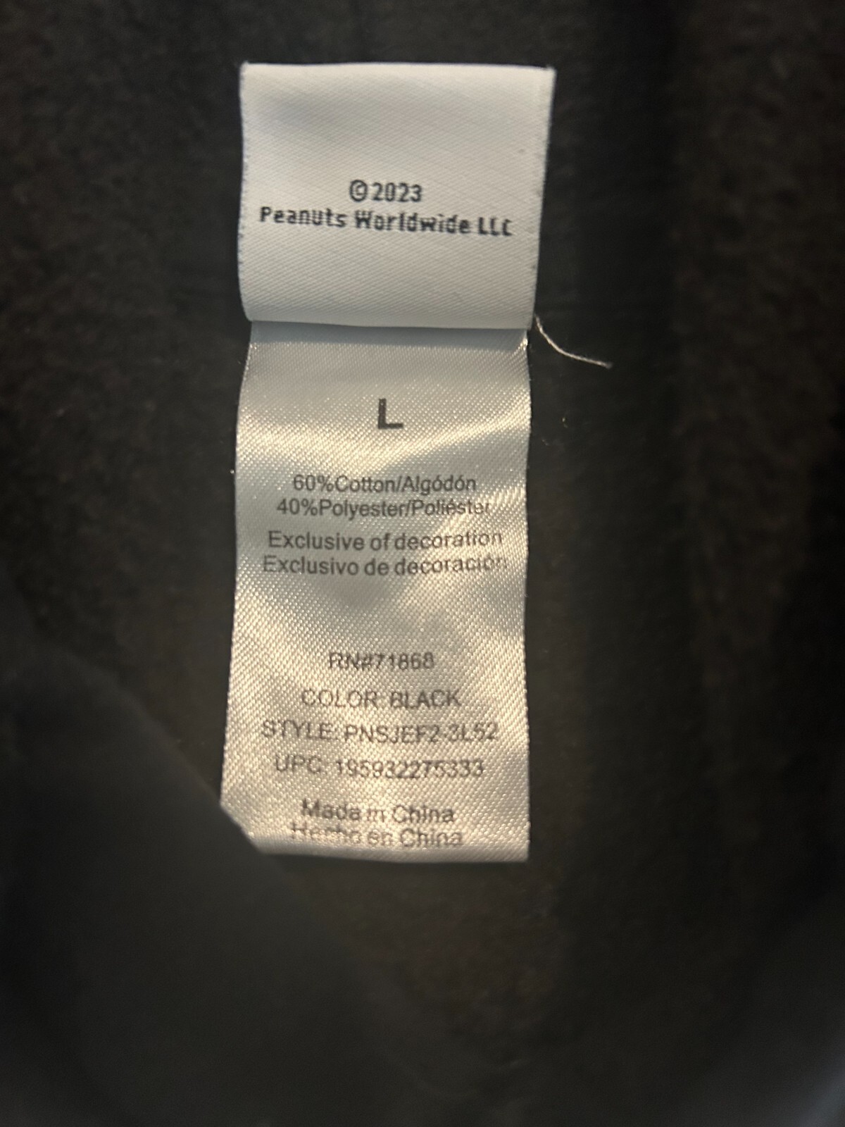 The Snoopy Embroidered Licensed Peanuts Women's Hoodie in Black, Size Large, is a stylish and cozy pullover featuring an embroidered Snoopy character design. Made from a comfortable cotton blend fabric, this hoodie is perfect for all seasons and occasions, with a drawstring closure and crew neck neckline. The athletic fit and long sleeves make it ideal for winter, summer, fall, and spring wear. Easy to care for with machine washable instructions, this hoodie is a must-have for any Peanuts fan looking for a classic and fun addition to their wardrobe.