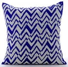 Sofa Cushion Cover Blue 16"x16", Room Decor Silk Fabric - White Chevron
