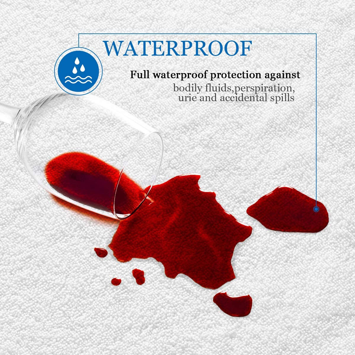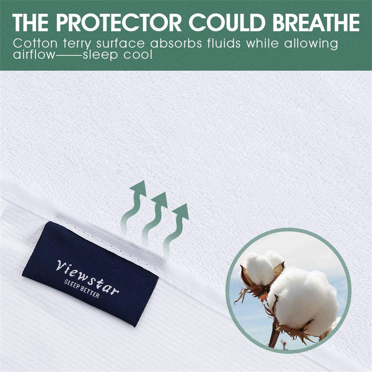 eBay Product description Ultra Smooth and Hypoallergenic: Our waterproof mattress protector top side is made from bamboo terry, which is a skin friendly and ultra soft fabric. With the waterproof membrane laminated back, it can protect the mattress from spills, liquids and stains, preventing the breeding of mold, dust mites and allergens, Especially suitable for those with kids, pets, or allergy, asthma, and eczema sufferers. Waterproof and Breathable: This mattress protector is lined with premium waterproof material (TPU) to prevent leakage. It is more breathable and noiseless, vinyl, phthalates and pvc free, full protection against urine and fluids, giving you a clean and healthy sleeping night. Strong Elastic and 360ᄚ Snug Fit : Fitted cover style design with strong elastic all around, that can ensure your mattress protector stay in place, avoid bunch up or slip out of place. Provide a more secure protection for your valuable mattress, extend the life of your mattress. Easy Care and Machine Washable: Machine washable and tumble dry a low setting. Our waterproof mattress pad covers are available in a range of sizes: Twin (39" x 75") , t he side skirt can automatically fit mattresses height up to 8-14 inch . Twin XL (39" x 80") , t he side skirt can automatically fit mattresses height up to 8-14 inch . Full (54" x 75") , t he side skirt can automatically fit mattresses height up to 8-14 inch . Full XL ( 54" x 80") , t he side skirt can automatically fit mattresses height up to 8-14 inch . Queen (60" x 80"), t he side skirt can automatically fit mattresses height up to 8- 18 inch . King (76" x 80") , the side skirt can automatically fit mattresses height up to 8- 18 inch . California King (72" x 84") , the side skirt can automatically fit mattresses height up to 8- 18 inch . You can choose which you need. We would recommend purchasing 2 mattress protectors. That you can use one to replace the other when accidents do occur.