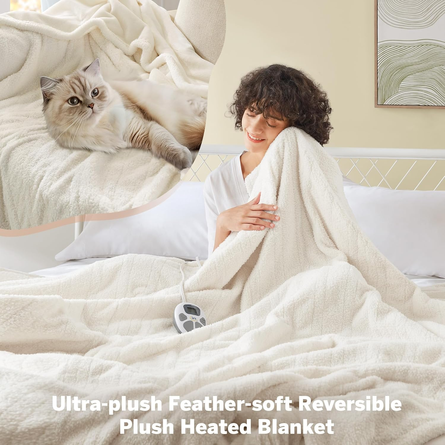 Sherpa Luxuriously Cozy: Experience the ultra-soft, cozy and warm for the perfect snuggle. Our fuzzy knit blanket is luxuriously soft and fluffy, providing cloud-like comfort. Oeko-Tex certified, ensuring high-quality and responsible craftsmanship Energy Saving: Stay warm and cozy while keeping electricity costs low. Our heated throw offers targeted heating on individual without raising your entire home's temperature. SIZE QUEEN OR LARGER comes with 2 controllers Premium Warmth: Even without electricity, this blanket keeps you warm and cozy. Soft, evenly spaced heating wires deliver quick, uniform heat, and it's ETL certified for safety and luxurious comfort Perfect Gift for Any Occasion: Luxuriously cozy feathersoft heated throw for cloudlike comfort. 10 level heat setting delivers adjustable heat and for added safety & convenience, it includes a 1-12 hour auto shut off Easy to Use: This full-size (77x84") heated blanket is perfect for personal comfort. It’s conveniently machine washable. Confidently carry 5 year warranty. DO NOT LEAVE CONTROLLER COVERED WHEN IN USED TO AVOID OVERHEATING Luxuriously Cozy and Energy Efficient: Experience ultimate comfort with our fuzzy knit heated blanket, featuring a buttery-soft feel and cloud-like fluffiness. Crafted with high-quality, responsible materials and Oeko-Tex certified, it ensures safe, cozy warmth even without electricity. When powered on, soft, evenly spaced heating wires provide quick and uniform heat, while dual controllers on queen or larger sizes offer personalized comfort. With 10 adjustable heat settings and a 1-12 hour auto shut-off for safety, it’s the perfect energy-saving solution to stay warm without raising your home’s temperature. ETL certified and backed by a 5-year warranty, this blanket makes a perfect gift for any occasion. Note: Do not cover the controller during use to prevent overheating