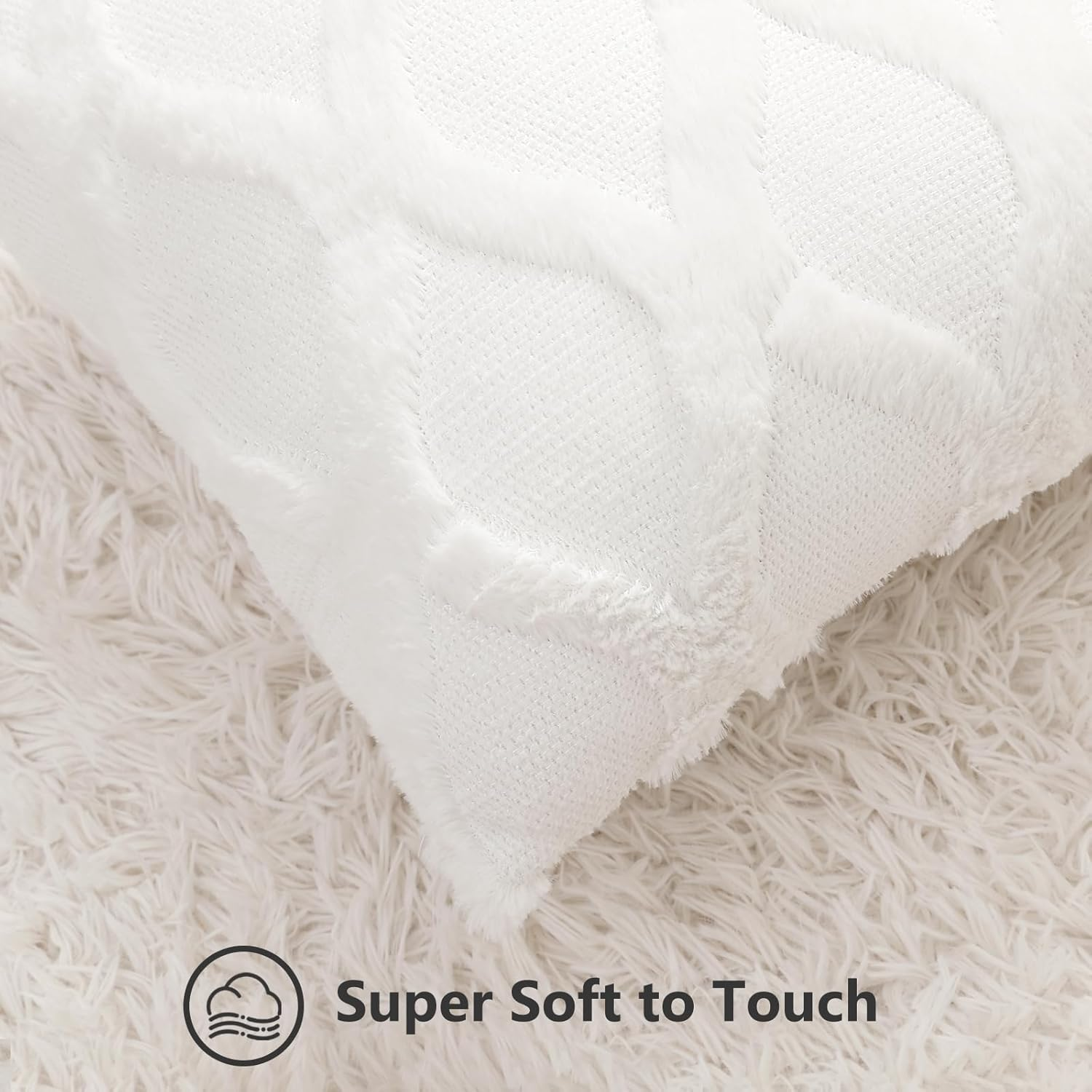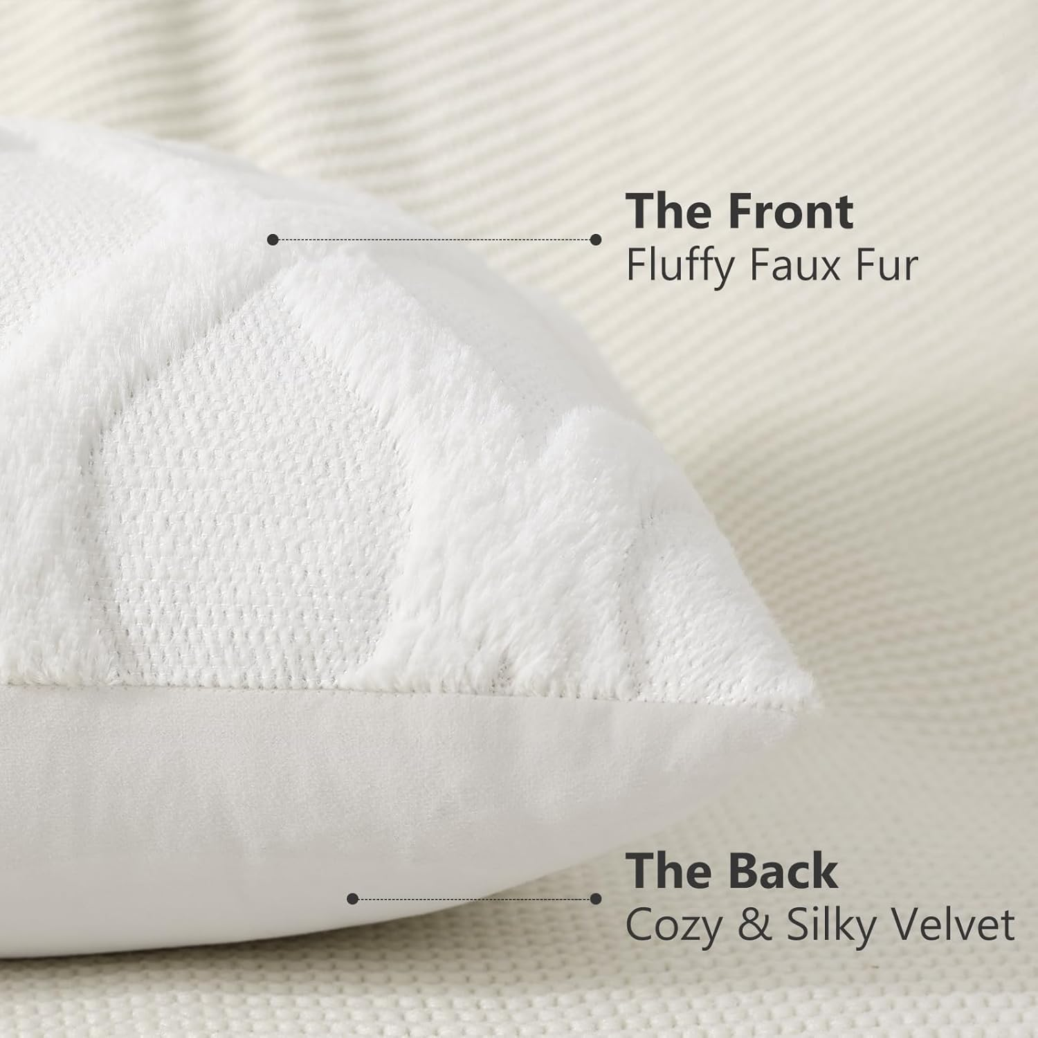 Wool Fur Top, Velvet Back, Inserts Not Included. SOFT and PLUSH: The fluffy faux fur Spring pillow covers are super soft on both sides. The front of the couch pillow covers is made of cozy short wool, while the back is silky hand-feel velvet, soft to touch THICK and STURDY: With exquisite workmanship and high quality fabric, the stitching are neat and sturdy, so the decorative pillow covers are designed for long-term use and won't shed easily HIDDEN ZIPPER: The boho throw pillow covers are designed with a hidden zipper that works smoothly, giving the sofa pillow covers an elegant and seamless look PERFECT HOME DECOR: With the texture and softness, our decorative pillow covers for couch will blend with any decor style, adding a touch of luxury while creating a cozy and stylish atmosphere EASY TO CARE: Machine washable in gentle mode. Tumble Dry Low. Do Not Iron; Package includes pack of 2 cream white throw PILLOW COVERS ONLY. INSERTS NOT INCLUDED Product Description Soft Plush Faux Fur Wool Pillow Covers The video showcases the product in use. The video guides you through product setup. The video compares multiple products. The video shows the product being unpacked. decorUhome Decorative Pillow Covers Upgrading Your Home Decor COVERS ONLY , NO INSERTS Care Instructions New Release Number Of Pieces 2 Number Of Pieces 2 Number Of Pieces 2 Material Chenille Material Chenille Material Polyester Pattern Solid Pattern flange edge Pattern Geometric Softness √ Softness √ Softness √ Invisible Zipper √ Invisible Zipper √ Invisible Zipper √