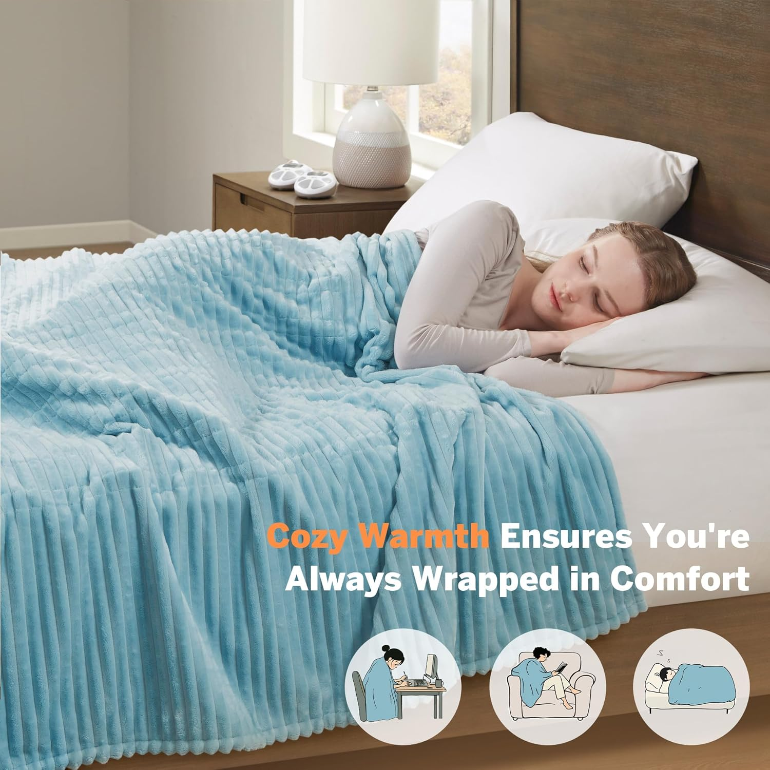 Store New Arrivals Add to Favorite View Feedback Contact Heated Blanket, Eletric Full Size Blanket, Soft, Ribbed, Plush Heating Blanket Full for Office, Couch, 1-12 Hr Auto Shut off Timer, 10 Lv Heating, ETL Certified, Full 77"X84" Sky Blue Description Item model number ST54-0307 Number of Items 1 Pattern Solid Country of Origin China Blanket Form Single Layered Blanket Theme Casual Unit Count 1.0 Count Batteries required No Product Dimensions 84"L x 77"W Material Plush Model Name Ribbed Plush Seasons Winter Included Components 1 Heated Blanket:77"Wx84"L Item Thickness 0.25 Inches Age Range (Description) Adult Fabric Type Plush Item Weight 6.26 pounds Special Feature Heated, Electric Fabric Warmth Description Heavyweight Color Sky Blue Recommended Uses For Product Travel, Reading, Napping Product Care Instructions Machine Wash Size Full 77"x84" Plush Serta - Rest easy with a brand you can trust. Serta’s heated blanket is ETL certified and independently tested to meet the highest safety standards. With decades of experience and hands on expertise, Serta is a true champion of comfort for all Luxurious Warmth: Indulge in the luxurious embrace of our plush corded bedding, offering the soothing touch of soft and warm comfort. Envelop yourself in this dreamy comfort, where every night feels like drifting on clouds, wrapped in warmth and serenity Energy Saving: Stay warm and cozy while keeping electricity costs low. Our heated throw offers targeted heating on individual without raising your entire home's temperature. SIZE QUEEN OR LARGER comes with 2 controllers Perfect Gift for Any Occasion: Luxuriously cozy feathersoft heated throw for cloudlike comfort. 10 level heat setting delivers adjustable heat and for added safety & convenience, it includes a 1-12 hour auto shut off Easy to Use: This full-size (77x84") heated blanket is perfect for personal comfort. It’s conveniently machine washable. DO NOT LEAVE CONTROLLER COVERED WHEN IN USED TO AVOID OVERHEATING With advanced technology offering 10 heat settings and overheating protection for peace of mind, this heated blanket provides unmatched warmth and comfort. The plush material features a corded, ribbed design to enhance its visual appeal, while the range of classic solid colors will suit any style. This blanket is also machine washable for easy maintenance, and a 5-year warranty will ensure you stay cozy for years to come ABOUT US We offer the best prices around on high quality products. Our E-store includes media such as books, movies, music and games while offering electronics, toys, sporting apparel, clothing, tools, general home, garden items and more. SHIPPING We are always working hard to ensure your package arrives as soon as possible. Please understand that some factors like weather, high postal traffic, and the performance of shipping companies are outside of our control. We offer free shipping to the lower 48 states and ship within 2 business days of payment, usually sooner. We do not accept P.O. Boxes. Please provide a physical address. For shipping outside of the continental USA, we only use eBay's Global Shipping Program.The item is shipped to KY and then sent to the rest of the world. International customers are responsible for all duties and taxes. Continue to check out in order to calculate costs for shipping the item to your country. Messages regarding eBay's Global Shipping Program MUST be directed at eBay EXCLUSIVELY. RETURNS We offer a 30-Day Return Policy on items which you are not completely satisfied with. You have the option for a full-refund or an exchange of the item. No returns are available on items shipped outside of the USA. PAYMENT We accept PayPal. CONTACT US This page content is yet to come Please ad us to your favorite seller and visit again later Thank You CUSTOMER SATISFACTION We try our very best to make sure every customer is completely satisfied. If there's a problem, message us! We're happy to help.