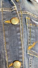 This beautiful denim jean jacket is a S/M and measures 23.5" from the top seam of the shoulder to the bottom hem and 19" from pit to pit. It has embellished buttons and the same pattern on the rolled up sleeves. No rips or stains. Please see all photographs as they are part of the description. Shipped with USPS Ground Mail. Up M44