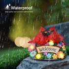 These resin figurines are made of sturdy material carefully crafted by the designer,odourless,waterproof and durable,garden sculptures & statues with a variety of realistic and colourful images,including black bears,gnomes,highland cows,cardinals and other different animal images,which can satisfy all kinds of animal lovers.Can be used by yourself or as a funny gift for your family and friends,such as,mum,grandma,daughter,wife,aunt,girlfriend,sister or anyone who loves garden decorations to express your thanks and blessings on Mother's Day,Valentine's Day,Christmas,Thanksgiving Day,birthdays,anniversaries,and any other special days,also can be used as housewarming gifts. Animal statues can be used as indoor or outdoor decorations for different scenes such as garden,porch,yard,lawn,balcony,patio,pathway,window sill,etc.,adding romantic and warm atmosphere to your home. Solar Cardinal Garden Statue:A pair of bird statue standing close to each other on a stone with the word 'WELCOME’ written on it,surrounded by flowers with LED lights,in realistic style and bright colours,not only a bright decoration in the garden,but also a great gift for mothers,sisters,wives,grandmothers,and other female friends, to bring them warmth and joy. Cute Garden Gifts:This cardinal statue can be used by yourself and is an ideal gift for your friends and family,on Valentine's Day, Mother's Day,Christmas,Thanksgiving,Birthday,Anniversary or Housewarming to convey your thoughts. Sturdy Materials and Waterproof:The cardinal figurine carefully sculpted with sturdy resin to ensure that the statue has vivid details and bright colours,with excellent weather resistance and waterproofing,which is adaptable to a variety of outdoor environments such as heavy rains,snowstorms and so on. Solar Powered and Easy to Use: The cardinal lamp built in high efficiency solar panels,the first time you use the product just press the switch button,placed in the sunlight can be irradiated,the automatic charging during the day 6-8h,the automatic lighting at night 8-10h,energy saving,for your garden to add a romantic atmosphere Moderate Size:The cardinal decor is moderate in size and weight,convenient to place in a variety of places such as garden,patio,lawn,balcony,window sill etc.,and become the highlight of your outdoor space. Exquisite craftsmanship:Each bird figurine is hand-carved by professional craftsmen with exquisite and lifelike details,perfectly integrating into the garden landscape and enhancing the overall aesthetics. Easy to Maintain:The simple design of the cardinals decor eliminate the need for complicated maintenance,and regular cleaning will keep it beautiful and functional for a long time in your garden. Customer Satisfaction Guarantee:We are confident in the quality and design of our cardinal outdoor decor.If you have any questions or concerns,please feel free to us for assistance. Variety of Styles:Provide a variety of design styles,such as animals,characters,plants,etc.,to meet the personalised needs of different consumers,and perfectly fit a variety of garden decor.