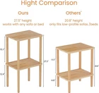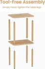 【100% Solid Wood】No cheap MDF or particle board! Our side table crafted from genuine natural wood (oak wood + beech wood). The surface coated with clear varnish, no smell non-toxic while preserving the natural wood texture. The anti-slip foot pads offer greater stability and avoid scratching the floor. The load-bearing capacity of this end table is up to 120lbs. it securely holds heavy lamps, stacks of books, or even a printer. 【Compact & Space-Saving Design】Dimensions: 15.7”W x 11.8”D x 27.5"H, this small end table for small spaces fits seamlessly beside beds, sofas, or tight corners. Use as a narrow bedside table for lamps/phones, a couch side table for remotes/snacks, or a storage shelf for books/toys—maximizing utility in minimal floor space. 【2-Tier Open Shelves & Easy Access】Two spacious shelves can help storage more essentials of your living room bedroom or office; The open design convenient access to items and avoids blocking wall sockets when placed against the wall. 【Simplistic but Stylish】Elevate your decor with this minimalist end table. Its warm wood tone blends seamlessly with farmhouse, boho, or contemporary decor. Perfect as a bedside table, office side table, or entryway accent piece. 【Tool-Free Assembly】No tools, no hassle! Simply hand-tighten the legs, and it’s ready to use. Lightweight and easy to disassemble, it’s perfect for renters, dorm rooms, or temporary setups.