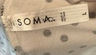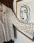 Note: two sizes in this pj set. Measurements: Large Top length is 26”, width is 22” (from armpit to armpit) and sleeve length is 24”. XL shorts have an elastic waist of 36”; with a 4” inseam. The shorts measure 13” from top to bottom. Soma Intimates women's pajama top and shorts. Top is size large and bottoms size XL. The black and white polka dot shorts reminiscent of a Dalmation's coat. Made with a blend of rayon and spandex, the fabric is soft and stretchy for a comfortable fit. The long sleeve top has buttons and is collared. The shorts are pull-on closure allowing for easy wear with 3 white decorative front buttons. The garment care is simple, as it is machine washable. This items are preowned but in good condition with no visible stains or flaws, unless specifically pointed out in photos. Color: We photograph items as accurately as possible; however, colors may vary depending on your monitor and the lighting.