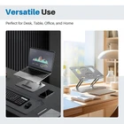 Built-In RGB Fan for Advanced Cooling: Equipped with an advanced RGB fan cooler, this laptop stand ensures efficient cooling. With a multi-speed fan and On/Off switch, it offers customizable airflow. The ventilated mesh panel enhances heat dissipation, keeping your laptop cool during extended use or gaming sessions Durable Aerospace-Grade Aluminum Alloy: Made with aerospace-grade aluminum alloy, this laptop stand combines stability, durability, and sleek design. The precision-crafted aluminum material not only supports laptops from 10 to 16 inches securely but also enhances your workspace with a modern aesthetic. Ideal for desk use in offices, homes, and gaming setups Foldable and Portable for Desk and Travel: Designed for convenience, this foldable and portable laptop riser is compact, lightweight, and easy to carry. Perfect for on-the-go professionals, students, and freelancers, it folds flat for effortless storage and travel. A versatile tool for office, home, or travel use Adjustable Height for Ergonomic Comfort: This ergonomic laptop holder offers adjustable height and angle, allowing you to raise your laptop to eye level. Minimize neck strain and improve posture whether you’re working, gaming, or studying. The compact and ventilated design ensures comfort and productivity Wide Compatibility and Versatile Usage: This laptop riser is designed for MacBook, ASUS, Dell, Lenovo, and other 10-16 inch laptops. Perfect for various scenarios like office work, home use, and gaming. Whether you’re a designer, programmer, student, or gamer, it enhances productivity and comfort across the board Tips: For safe operation, always remove your laptop or tablet before adjusting the height or angle of the stand