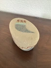 Add a touch of Southwestern charm to your home with this beautiful oval lidded trinket box. Crafted with a textured sand art finish, it features earthy desert tones with a tribal-inspired feather motif on the lid and geometric designs around the sides. This piece is perfect for storing jewelry, keepsakes, or small treasures, while also serving as a decorative accent for any rustic, boho, or Native American-inspired decor. ✅ Features: • Handmade sand art-style trinket box • Oval shape with fitted lid • Tribal feather motif with geometric Southwestern patterns • Felt-lined bottom to protect surfaces • Great for jewelry, keepsakes, or decorative use 📏 Dimensions (approx.): • Length: ~6–7 inches • Width: ~4 inches • Height: ~2–3 inches 🎨 Condition: Pre-owned and in excellent condition with no chips or cracks. Please see photos for details. Southwestern decor, sand art trinket box, handmade jewelry box, boho rustic keepsake, Native American style decor, desert motif, tribal feather design, rustic oval box