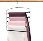 These pants hangers are a game-changer for closet organization! The 5-layer swing-arm design saves so much space while keeping pants neatly hung and wrinkle-free. The non-slip padding securely holds jeans, slacks, and other bottoms without stretching or slipping. Sturdy stainless steel construction feels durable, and the compact size fits perfectly in any closet. Love how it maximizes vertical space while keeping everything visible and accessible. A must-have for anyone needing better wardrobe storage!