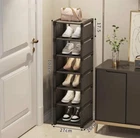This shoe rack organizer is a space-saving solution for organizing your shoes with multiple layers. Made of plastic with a modern matte finish, it features 4 compartments and 5 shelves, with a capacity to hold 6-10 pairs of shoes. The free-standing design makes it easy to place anywhere in your home, and the stackable feature allows you to customize the height to fit your needs. With a sleek design and easy care instructions of hand washing only, this shoe rack is a practical and stylish addition to your household organization.