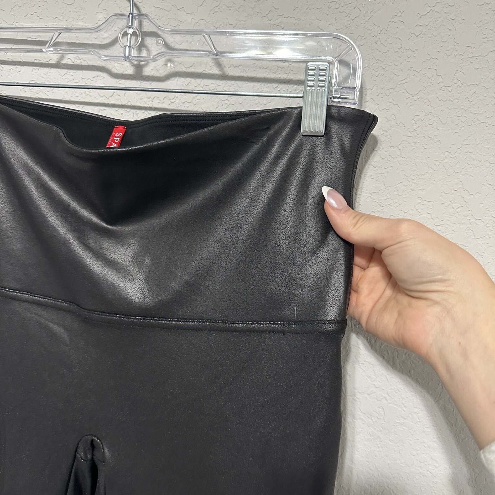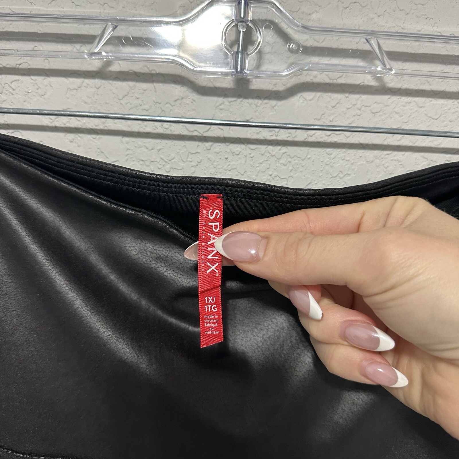 Spanx Black Faux Leather Leggings Womens Size 1X Shaping Stretch Warm New without tags Womens size 1x Nylon blend Stretchy Faux leather Flat lay measurements: Waist:16.5” Rise:9” Inseam:27” Faux leather, shaping, shapewear, stretchy, city, classic, holiday, festive