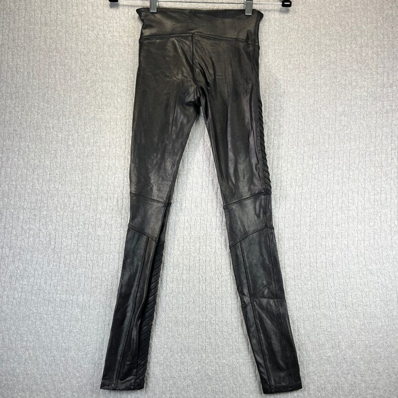 excellent condition please examine all photos for flaws measurements and exact fit. No hassle returns and all items are shipped out daily Monday through Friday thank you. Color: Black Department: Women Style: Legging Type: Leggings Material: Faux Leather Features: High Waist, Sculpting, Stretch, Shaping, Elastic Waist Rise: High (Greater than 10.5 in) Pattern: Solid Character: Moto, Sculpting Performance/Activity: Workout, Dance Occasion: Casual, Party/Cocktail, Activewear Keywords: Spanx, Moto Leggings, Faux Leather Leggings, High Waisted Leggings, Sculpting Leggings, Black Leggings, XS Leggings, Spanx Leggings, Designer Leggings, Fashion Leggings, Workout Leggings, Casual Leggings, Moto Style, Ribbed Leggings