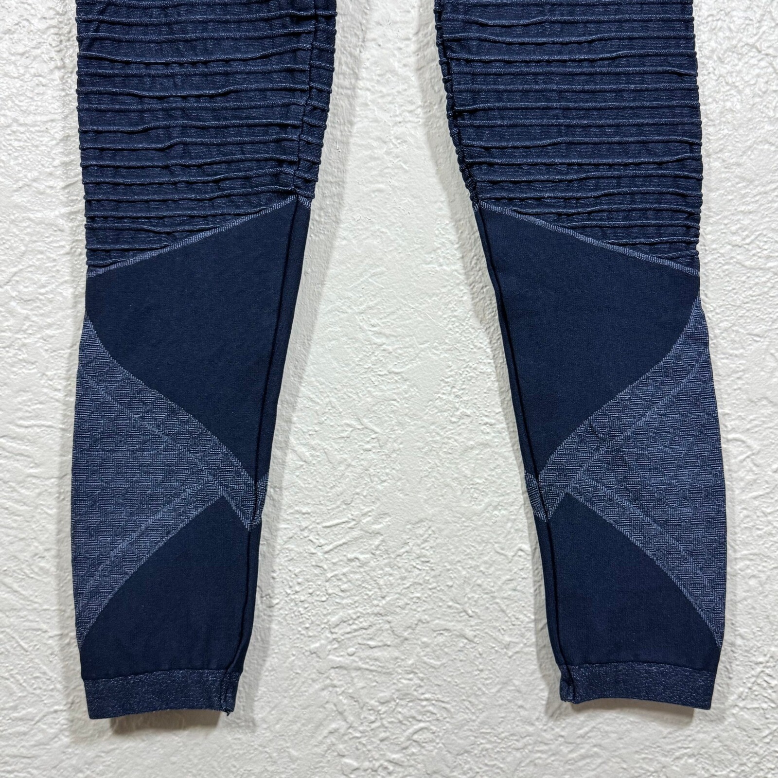 Spanx Moto Seamless Leggings Small Textured High Waist Ribbed Dark Navy Gymcore Brand: Spanx Size: Women's size Small Color: Dark navy blue Features: High-rise waist, ribbed moto texture, seamless design, sculpt, slimming, shaping compression fit Material: 94% nylon, 6% elastane Country of Origin: Colombia Style Name: Spanx Look at Me Now Seamless Style Number:A376230 Condition: Item is in excellent preowned condition with no flaws. All purchases are shipped within one business day of purchase. Free returns are accepted for any reason within 30 days of purchase. Keywords: athleisure, gymcore, activewear, sporty, sculpting, modern, minimal, edgy, performance wear, seamless, baddie, moto, biker, grunge