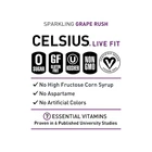 Functional, Essential Energy with 200mg Caffeine to help you LIVE FIT Made with Premium, Proven Ingredients and 7 Essential Vitamins No Sugar, No Sodium No High Fructose Corn Syrup, No Aspartame, No Artificial Flavors or Colors Gluten-Free, Kosher, Non-GMO, & Certified Vegan Juicy, sweet, refreshing and a little nostalgic. Enjoy the flavor packed taste of CELSIUS Sparkling Grape Rush. CELSIUS is functional, Essential Energy, a better-for-you, premium alternative to traditional energy drinks. As a global, lifestyle fitness drink, CELSIUS was created to help people LIVE FIT, exceed their goals and elevate their everyday lives. Made with proven, premium ingredients, 7 Essential Vitamins and zero sugar, no artificial colors, no aspartame, no high fructose corn syrup and non-GMO. CELSIUS is vegan, gluten-free and Kosher. Our proprietary MetaPlus blend contains green tea extract with EGCG. It also includes guarana seed extract, ginger root for flavor and digestion, vitamin C to help support your immune system, vitamin B for energy production, and chromium to help control hunger, making it an ideal pre-workout drink. Juicy, sweet, refreshing and a little nostalgic. Enjoy the flavor packed taste of CELSIUS Sparkling Grape Rush. Made with clinically proven ingredients, this carbonated flavor of CELSIUS has the perfect balance of flavor and energy that serves as an awesome pick-me-up for active lifestyles. Make CELSIUS your go-to choice for Essential Energy! CELSIUS is available in 12 oz. slim cans and sold in a 12-pack for convenience.