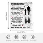 Sweet Daughter Gift: Our cozy and warm blanket is the perfect gift for your daughter's birthday or any special occasion. Made from anti-pilling flannel, it provides comfort and love that she'll cherish forever Gifts for Daughter From Dad: With meaningful words printed on the blanket, this gift is a beautiful reminder of the bond between father and daughter. It's a thoughtful way to show your love and appreciation, bring a smile to your daughter From Dad to Daughter Gifts: This Daughter Blanket is specifically designed as a gift from a father to his daughter. It's a heartfelt gesture that will make her feel loved and special Daughter Gifts from Dad: Our Blanket is both soft and durable. It's anti-pilling flannel fabric ensures it will remain cozy and retain its warmth throughout the years. Whether it's for travel, camping or home decor, it's designed to fulfill your daughter's needs Perfect Gift Idea: Our Blanket is not just for birthdays - it's a versatile gift that can be given on any occasion. Whether it's a daughter's graduation, wedding, or simply a gift to show your love, this blanket is sure to be appreciated