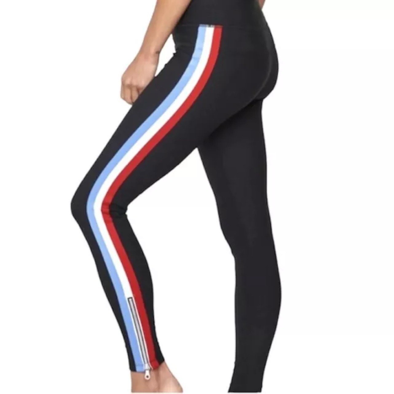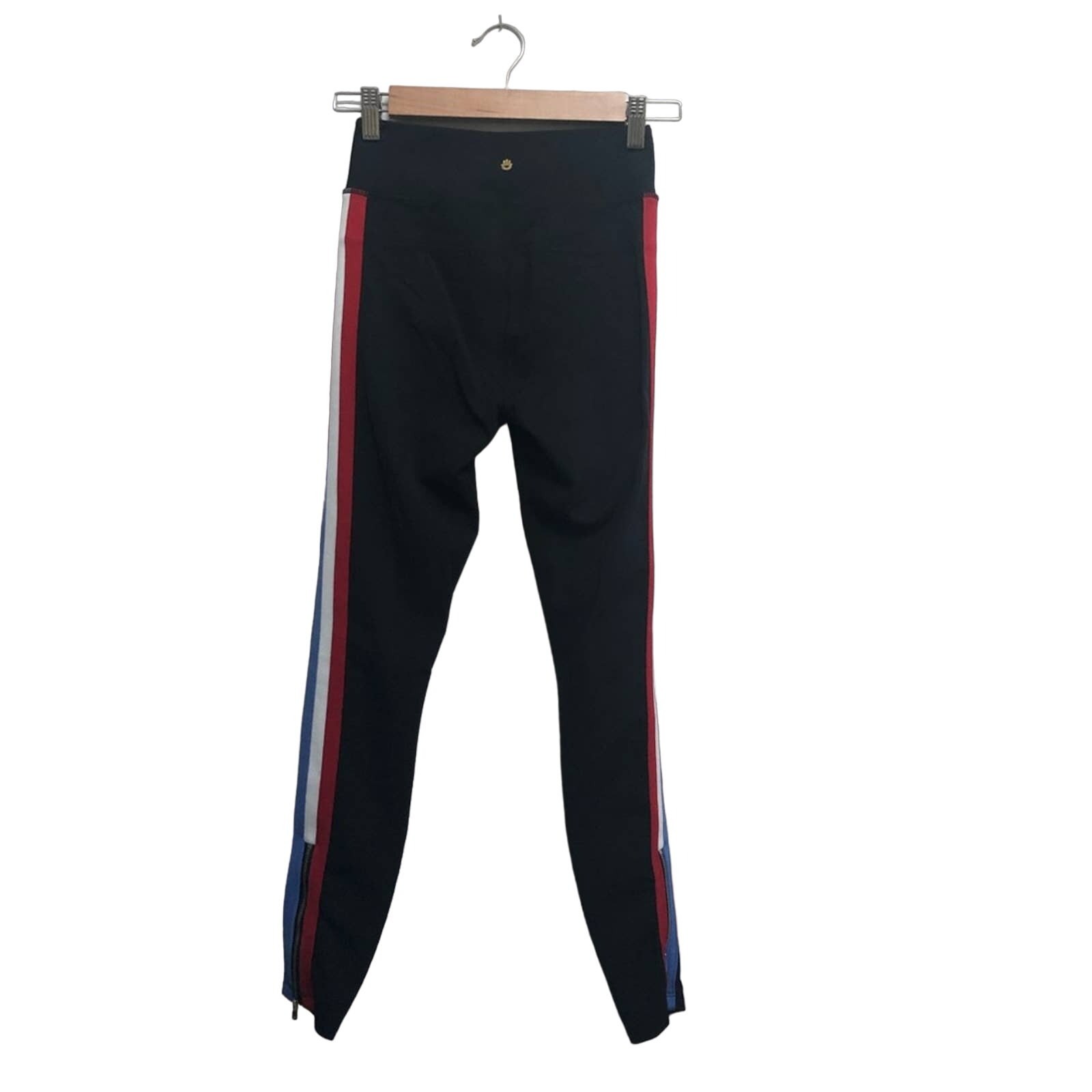 DESCRIPTION These Spiritual Gangster Track Tight leggings feature a flattering ultra high waist, bold tri-color side stripes, and ankle zippers for customizable style. Made from a compressive, ultra-soft technical blend for comfort and performance, perfect for workouts or athleisure wear. Styling Suggestions: Pair with a cropped hoodie and sneakers for a sporty streetwear vibe, or wear with a tank and slides for a casual summer look. • Brand: Spiritual Gangster • Size: XS • Color: Black with red, white, and blue side stripes • Material: 73% Nylon, 27% Spandex • Style: Leggings • Features: Ultra high waist, tri-color side stripe, ankle zipper, compression fit • Fit: Slim / compressive • Pattern: Striped side detail • Occasion: Activewear, casual, travel • Season: All seasons • Condition: Excellent preowned condition — no flaws • Style Aesthetics: sporty, casual, streetwear, trendy, athleisure, sleek, modern, versatile Ships fast! Clean, smoke-free, pet-friendly home. Bundle to save!
