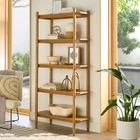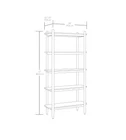 This chic, open bookshelf from the Better Homes & Gardens® Springwood Collection will offer a versatile and trendy solution to any storage dilemma. The large shelves of this 5 shelf bookshelf are a perfect place to display home décor items like decorative plants, an array of knick-knacks and collectibles, and framed photos of your family and friends. Standing on fashionably tapered legs, this tall bookcase with five spacious shelves will provide the room to store a collection of novels, children’s books, or organizing totes or baskets. Mix and match any number of items on this tall, display bookcase. There’s room for everything! Its beautiful and bold design makes this open bookshelf a great addition to the living room, office, or even in the bedroom. Any room in the home will benefit from the neutral tones of this dark, Charcoal finish. Finished on all sides for any angle of placement, this beautiful 5-shelf bookcase will create functional storage solutions without sacrificing style. Assembled Dimensions: 35.98" L X 14.88" W X 71.97" H Open shelving for storage and display Holds books, binders, framed photos, collectibles, and more Solid Wood Accents Charcoal finish Model #: 434761 Box Dimensions: 77.01" L x 17.13" W x 6.89" H