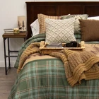 Introducing the Spruce Trail Lodge Comforter Set from Your Lifestyle by Donna Sharp: Experience Rustic Comfort in Your Bedroom! Transform your bedroom into a serene wilderness retreat with our Spruce Trail Lodge Comforter Set. This captivating ensemble showcases a stunning sketched mountain scene, adorned with charming wildlife motifs such as moose, bear and pine trees. Immerse yourself in nature's beauty as you curl up in the warmth of this cozy bedding set. Crafted with meticulous attention to detail, our Spruce Trail features a large, peaceful plaid border that surrounds the captivating mountain design. Shades of sage green, cocoa, and tan add a touch of earthy elegance to your space, infusing it with a rustic charm that is sure to impress. The comforter's flip-side offers a delightful Free Shipping Over $49.99* Details Spruce Trail 3 PC Comforter Set from Your Lifestyle by Donna Sharp Product Description: Introducing the Spruce Trail Lodge Comforter Set from Your Lifestyle by Donna SharpExperience Rustic Comfort in Your Bedroom! Transform your bedroom into a serene wilderness retreat with our Spruce Trail Lodge Comforter Set. This captivating ensemble showcases a stunning sketched mountain scene, adorned with charming wildlife motifs such as moose, bear and pine trees. Immerse yourself in nature's beauty as you curl up in the warmth of this cozy bedding set. Crafted with meticulous attention to detail, our Spruce Trail features a large, peaceful plaid border that surrounds the captivating mountain design. Shades of sage green, cocoa, and tan add a touch of earthy elegance to your space, infusing it with a rustic charm that is sure to impress. The comforter's flip-side offers a delightful surprise with a gingham check pattern, further enhancing the lodge-inspired aesthetic. Sketched bear and pine tree motifs on the reverse side create a harmonious balance, showcasing the perfect blend of nature and classic style. Each set includes 1 comforter and 2 pillow cases. (Image on pillow cases may vary slightly) 100% Microfiber, machine washable. Features: 100% Microfiber Reversible to a new design Machine wash cold, tumble dry low Queen set includes 1 comforter 90" x 90" and 2 standard pillow cases 20" x 26" King set includes 1 comforter 104" x 96" and 2 king pillow cases 20' x 36"