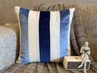Our Products Crafted meticulously with high-quality, breathable fabric to add a touch of elegance to your space. Ideal for decorating any space, whether living room, bedroom, patio, dining room, or beyond! The pillow cover comes with a pack sequins in case of loss or damage. Washing tips- These pillow covers are to be dry cleaned only for long-lasting elegance and quality. Iron on low heat if necessary, avoiding direct contact with embellishments or prints. The purchase does not include pillow or Inserts. Product Features Elegant velvet bands Velvet Band Blue features exquisite velvet bands, offering unmatched detail and a unique finish that elevates your space in a myriad of colors High quality fabric Velvet Band Blue is crafted from high-quality velvet fabric, meticulously chosen to ensure unmatched comfort, durability, and style. Hidden zipper Experience effortless styling with the hidden high-quality zipper, designed for smooth integration with your pillow core for a sleek appearance A fit for every home Discover our range of cushion covers in different sizes: 12x14, 12x16, 12x18, 12x20, 12x22, 12x24, 12x26, and 12x26. Find the fit for your space. Play Video Add a touch of opulence to your home décor Introducing "Velvet Band Blue" by The HomeCentric – a luxurious touch of elegance for your home. Crafted from high-quality velvet fabric, this pillow cover in a refreshing Blue hue features a modern striped pattern that adds a sophisticated flair to any decor. Available in a variety of colors, it’s the perfect accessory for your couch, bedroom, living area, patio, or any other setting. Elevate your space The HomeCentric and enjoy blend of comfort and style that enhances any room. How to wash decorative throw pillow cover? The HomeCentric's decorative pillow covers are to be 'dry cleaned' only and if necessary, iron them on a low heat, avoiding direct contact with embellishments or prints to maintain a lasting charm Can I mix velvet throw pillow covers with other fabric types for layering? Absolutely! Mixing velvet throw pillow covers with other fabric types for layering. Velvet pairs nicely with other fabrics such as cotton, satin, and faux fur. Experiment with different fabric combinations to achieve a personalized decor. How do I choose the right size throw pillow cover for my pillow insert? It's important to choose the right size to ensure a snug and professional-looking fit. Measure your pillow insert and select a cover that is the same size for a perfect fit, or choose a slightly smaller cover for a fuller look. Hidden flap covered zipper Experience hassle-free pillow maintenance with our hidden flap covered zipper design for easy insertion and removing of pillow inserts, allowing you to effortlessly maintain the cleanliness and appearance of your pillows. Play Video Play Video The Swathe Collection by The HomeCentric features luxurious velvet band pillow covers available in a range of colors. Choose from both lumbar and throw pillow sizes to add an elegant, textured accent to your home decor.