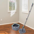 Square Spin Mop & Bucket System Floor Mop with Separate Compartments for Clean and Dirty Water, Self Wringing 360° Rotating Mophead with 2 Scrub Head Pad Refills Product Details Size: Mop Bucket with 2 Mop Pads Brand: True & Tidy MPN: SQUARE-SPIN-MOP-BUCKET UPC: 810074612340 EAN: 0810074612340 Color: Gray Material: Microfiber, Stainless Steel Handle Material: Stainless Steel Handle Type: Telescopic Head Material: Stainless Steel Included Components: 2 Machine Washable Mop Pads Special Feature: Self-Wringing Brand: True & Tidy Manufacturer: True & Tidy UPC: 810074612340 Product Dimensions: 11.8 x 11.8 x 7.28 inches Item Weight: 4.34 pounds Country of Origin: China Item model number: SQUARE-SPIN-MOP-BUCKET Batteries required: No SEPARATE COMPARTMENTS FOR CLEAN AND DIRTY WATER - With dual compartments, our system keeps clean and dirty water separate, guaranteeing that only pristine water touches your floors! SWIVEL MOP HEAD - The mop head effortlessly rotates in a full circle, enabling you to navigate even the most challenging and inaccessible spots with ease. NO-MESS SOLUTION - Our mop and bucket feature a built-in brush that cleans and scrubs the mop pads with each rotation, ensuring a mess-free cleaning experience. EFFORTLESS - The convenient water inlet enables you to easily refill the mop bucket without the need to open the water compartment. PREMIUM - Our wet-dry spin mop features an adjustable stainless-steel handle and thick microfiber mop pads for top-notch quality.