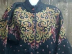 St Michael M&S women's long sleeve button up cardigan UK 12 Black with all over graphic detail 22'' pit to pit 26'' from shoulder to bottom hem Two hip pockets In very good+ used condition overall, very light wear Has a small hole to front (please see photographs)