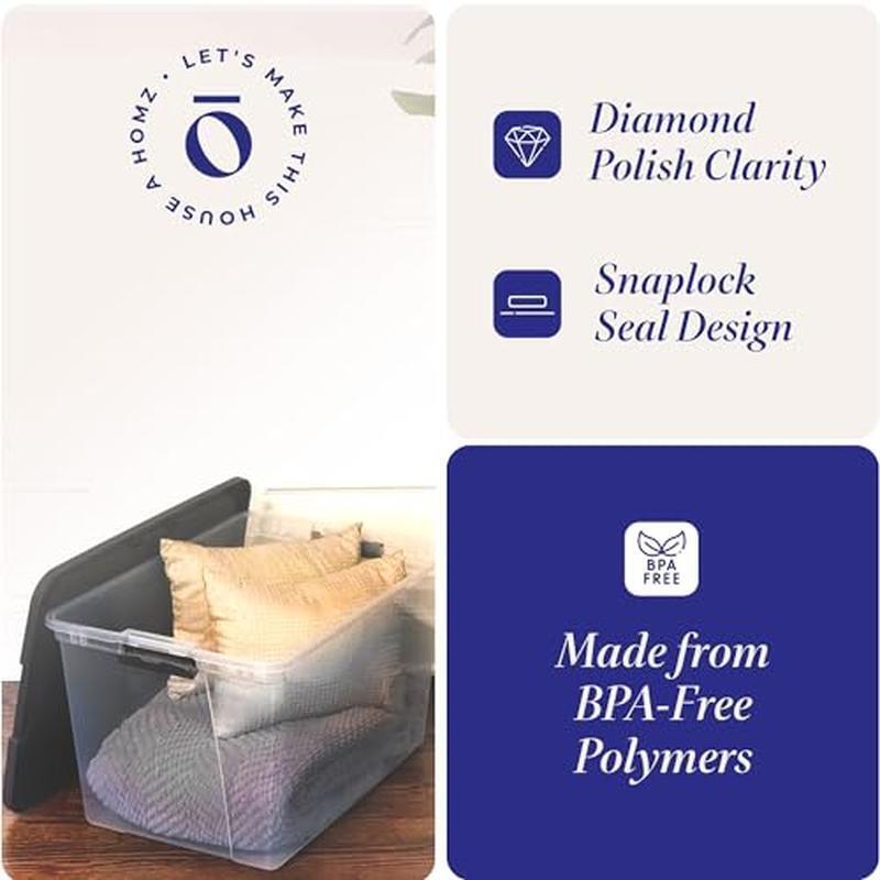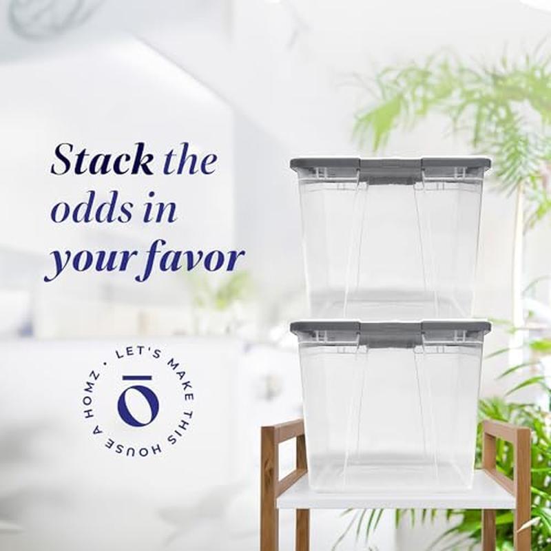 You may also like Lockable Storage Trunk Heavy Duty Organizer Gear Camping Hunting Tools New 29.64 USD Free shipping 41 Compartment Hardware Storage Box Organizer Cabinet Drawer Parts Plastic New 36.57 USD Free shipping 41Qt Stackable Clear Storage Bins W/ Lids Ideal Organizing Closets Toys Crafts 25.27 USD Free shipping About this item Dressed to Fill: Contain your chaos with this set of clear storage totes ideal for clothing, office supplies, personal items, and more Made to Order: These 23. 5 x 16. 12 x 13. 5-inch storage bins with locking lids are great for organizing your home office, garage, or classroom. Great for books, sweaters, supplies, and seasonal decorations No Wasted Space: Our set of plastic totes fits perfectly into any room. Keep your treasures safe with our locking sides and locate your items in a snap with clear sides From Trash Bin to Storage Bin: Life in plastic is fantastic when it is made from 90-percent recycled materials. We know the earth is as important to you as your treasures. Let us store your goods while being good to Mother Earth. HOMZ For Your Home: From organization to storage, we have the container that you are looking for. Allow us to make your house a HOMZ. › product details Brand:HOMZ Color:Gray Lid Material:Resin, Plastic Special Feature:Durable Style:Set of 2 You may also like Modern Dimmable Ceiling Light Fixture Nickel Metal Frame 3 Frosted Glass Globes 54.4 USD Free shipping Heavy Duty Rubber Doormat Non-Slip Indoor Outdoor Entry Rug Welcome Mat Home Use 55.2 USD Free shipping Sleep Cool Lux White Bed Pillow W/ Cooling Cover Standard Home Comfortable Use 26.13 USD Free shipping Solid Diamond 3PC Olefin Indoor Rug Set Non-Slip Stain Resistant Accent Rugs New 48.74 USD Free shipping Lickable Cat Treats Stew Senior Cats Variety Pack Tuna Chicken 12 Pouches New US 19.92 USD Free shipping Machine Washable Faux Fur Area Rug Abstract Skid Resistant Indoor Pet Friendly 103.5 USD Free shipping Shibori Gardening Tool Set 23 Piece Trowel Cultivator Pruner Markers Case New US 23.05 USD Free shipping Plush Shag Area Rug Indoor Soft Non-Slip Stain Resistant Machine Washable New US 28.37 USD Free shipping Waterproof Furniture Cover Love Seat Protector Non-Slip Machine Washable New US 34.46 USD Free shipping 4 Drawer Rolling Storage Cart Metal Frame Trolley Organizer W/ Wheels Indoor Use 49.39 USD Free shipping 10 Gallon Glass Aquarium Starter Kit LED Light 3 Stage Filter Fish Tank New 51.73 USD Free shipping Fringe Beach Patio Umbrella Outdoor Market Umbrella Metal Tilt Adjustable Shade 79.26 USD Free shipping
