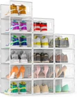 Shoe Organizer Storage Boxes Closet Stackable Clear Plastic Container X Large Size Shoe Box: Upgraded wider and higher shoe organizer fit for larger shoes size . Unit size is 13.1 "(L) x 10 "(W) x 6 "(H), fits for women’s shoes up to US size 11 and men’s shoes up to US size 10. Suitable for many types of shoes such as heels, flats, sneakers, leather shoes, sandals, wedges, and others shoes. Stable Stacking and Easy to Assemble: Upgrade new slot lock design just only two steps “INSERT-and- SLIDE” to finish the stacking, more stable stacking structure for moving overall. Alternatives to Traditional Shoe Racks: Compared with traditional shoe rack, shoe storage box with lid is dust-free and stackable. Modular design make combine them according to available space conveniently, easy to move and use. Clear Shoe Manager: Clear shoe boxes stackable helps you search for your shoes quickly and efficiently, and ventilation design allows air circulation and odor prevention. Limited space saving fit for in the closet, wardrobe, hallway, entryway, bedroom, under bed and so on. 10.0 "h x 13.1 "h x 6.0 "h. Weight: 7.96 lb Item model number SHOEBOX Style 12 Pack Capacity 12.9 Liters Number of Items 12 Closure Type Flip Top Pattern Solid Batteries Included? No Usage Inside Unit Count 12.0 Count Batteries Required? No Number of Compartments 1 Material Plastic Maximum Weight Recommendation 6 Kilograms Included Components Plastic Sheet, Back Lid, Front Lid Item Package Quantity 1 Water Resistance Level Waterproof Item Weight 7.96 pounds Finish Polished Material Feature Recycled Opening Mechanism Slide Occasion Christmas, New Year'S, Birthday, Thanksgiving Special Features Portable, Easy to Install, Removable, Waterproof, Dustproof Special Feature Portable, Easy to Install, Removable, Waterproof, Dustproof Part Number SHOEBOX Color White (12 PACK ) Size X Large Shape Rectangular Recommended Uses For Product Shoe storage Product Dimensions 13.1"L x 10"W x 6"H Number Of Pieces 12