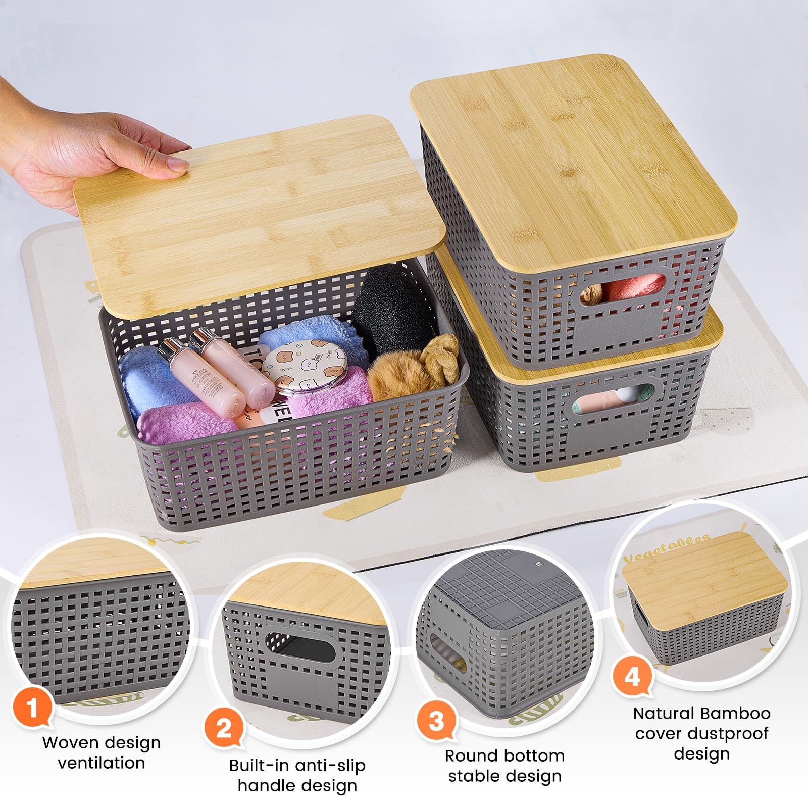 Storage Bins With Bamboo Lids Plastic Lidded Container Baskets for Organizing